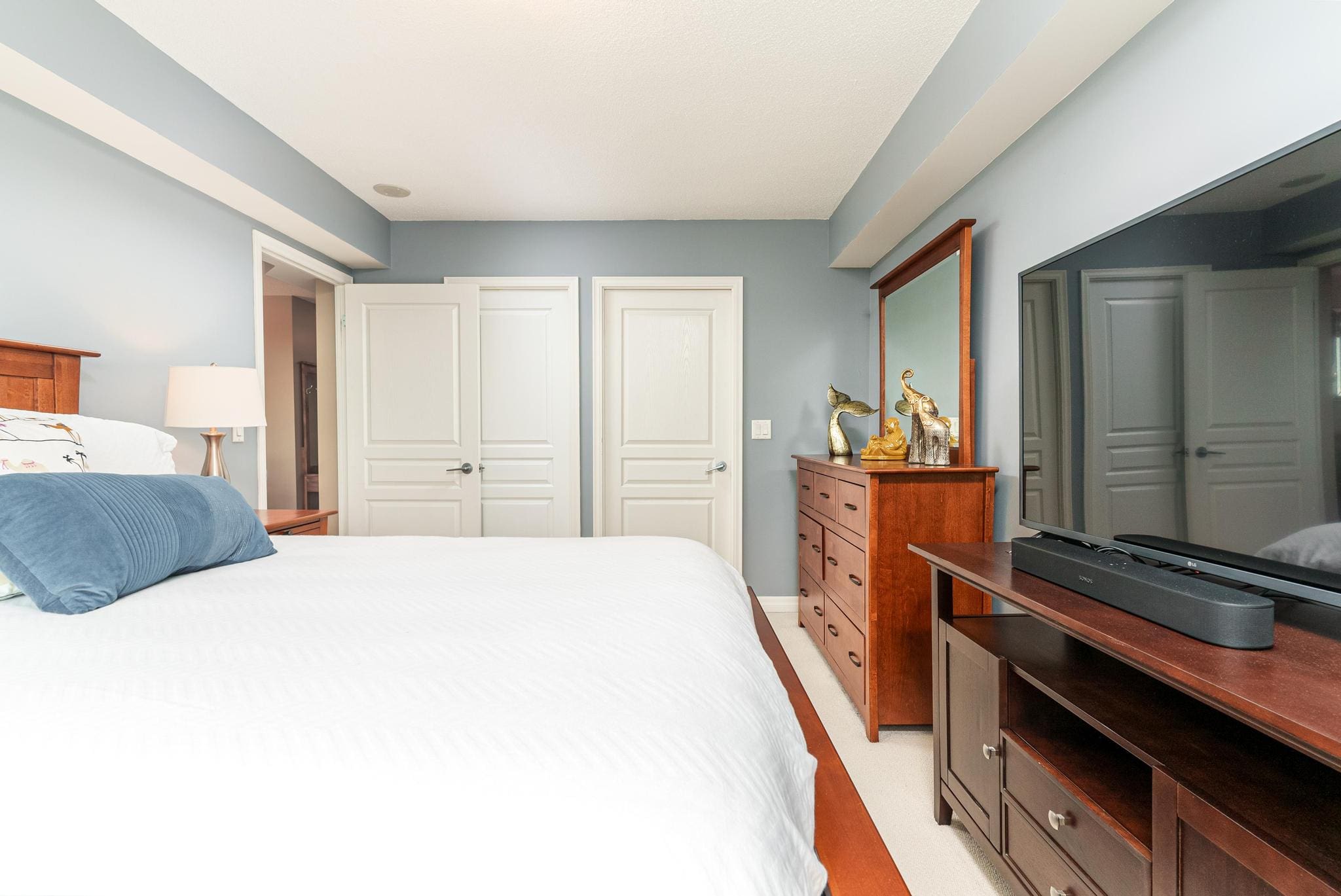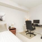 This rarely offered corner unit where elegance meets functionality boasts a bright 2-bedroom plus den with 2-bathrooms! The warm and spacious foyer with a double closet for ample storage is the passageway to an open concept living/dining room that is flooded with natural light from large, south-facing windows. A chef-inspired kitchen with stainless steel appliances, stone countertops and a cozy breakfast bar is perfect for entertaining. The primary bedroom offers a spa-like 4-piece ensuite and a generous walk-in closet. The second bedroom has two double closets and plenty of storage! An extra-large den is ideal for a third bedroom, a home office or a quiet reading nook.