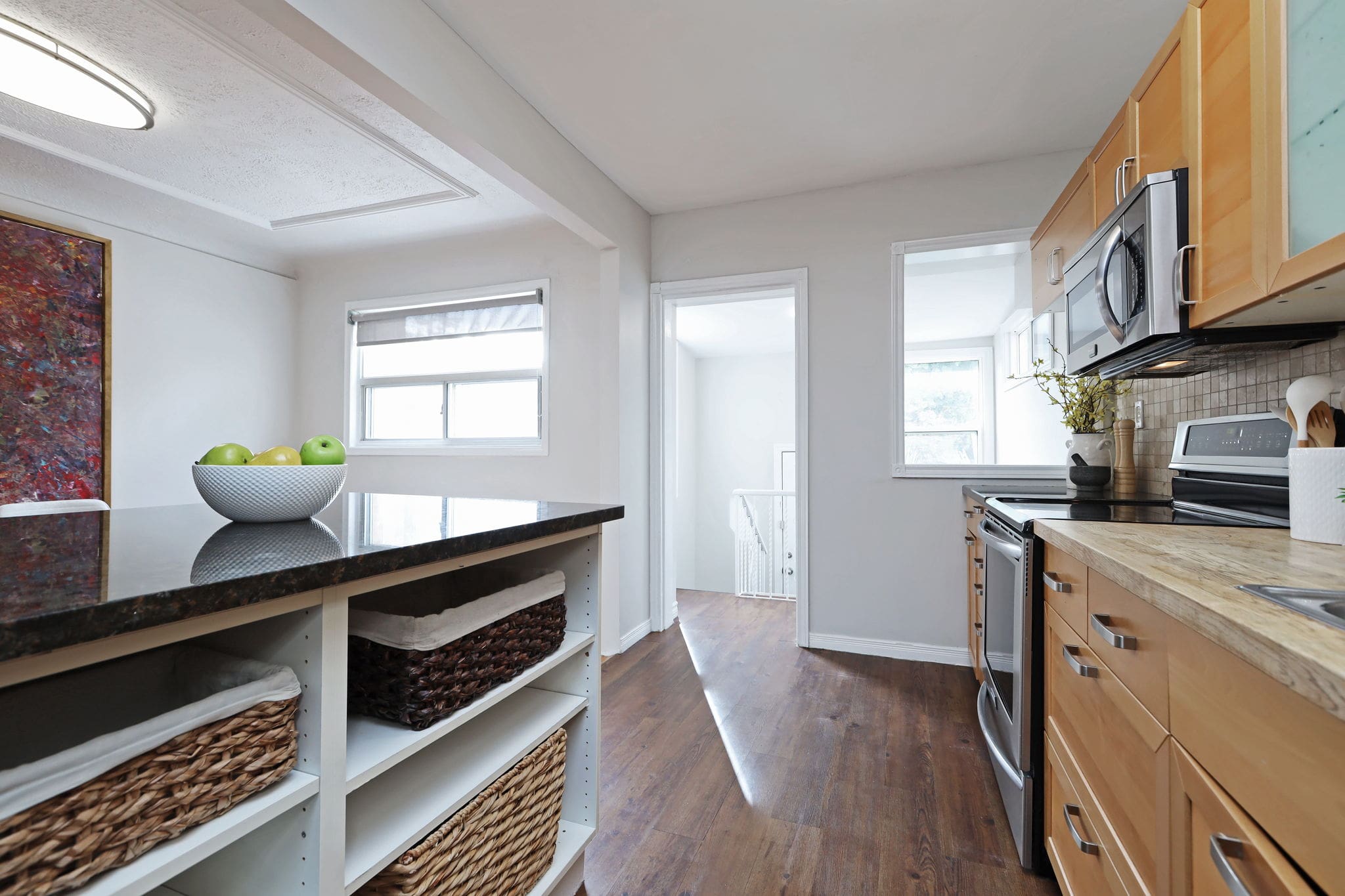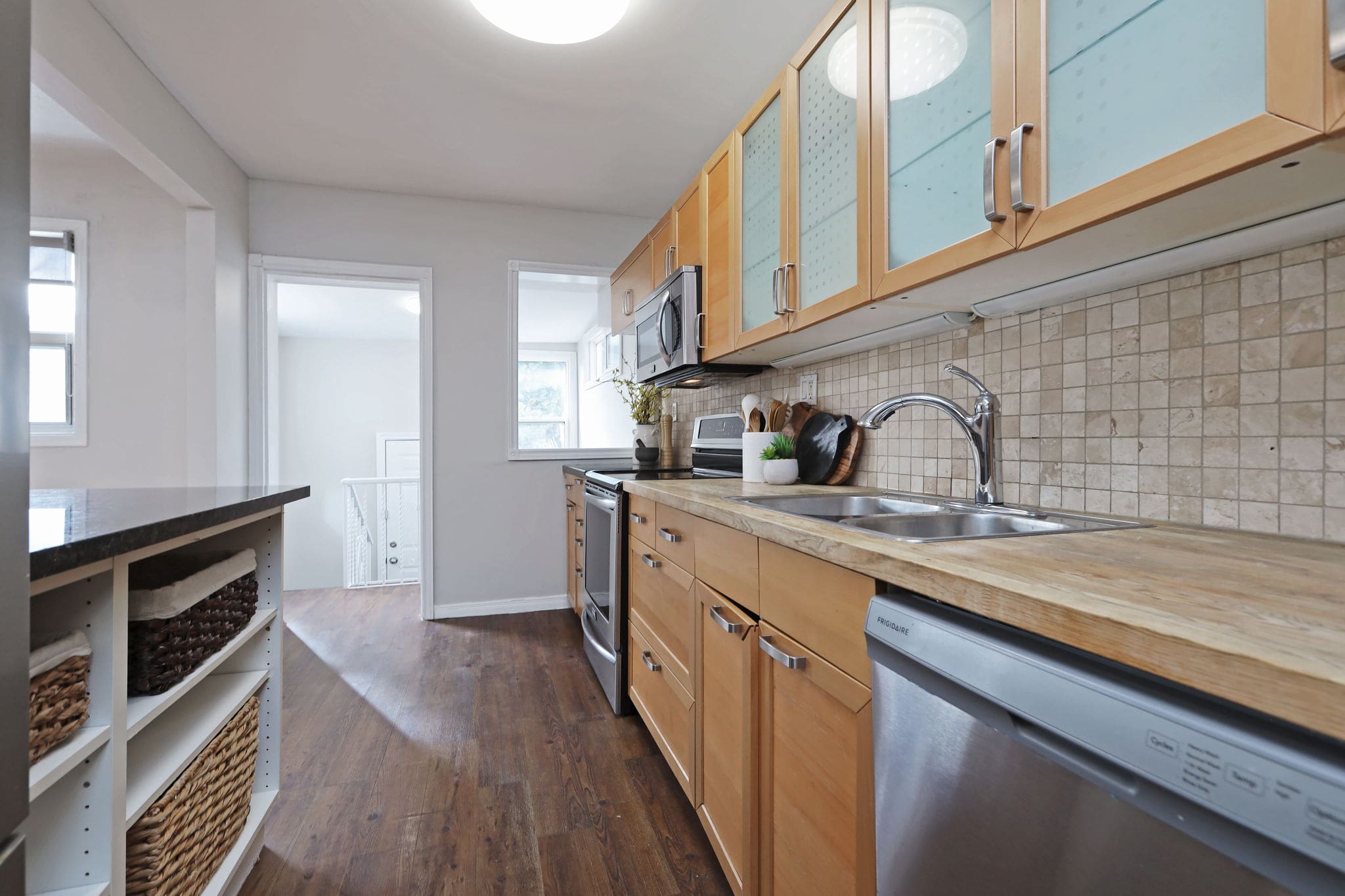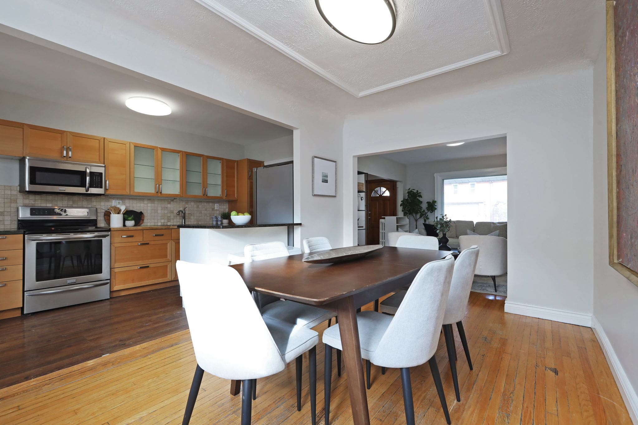 Boasting an open-concept layout and abundant natural light, this home features hardwood floors throughout and a stylish kitchen with stainless steel appliances and granite countertops. Three generous bedrooms and two full bathrooms provide ample space for a young or growing family. The fully finished basement with a 3-piece bath and separate entrance offers great potential for rental income or a comfortable recreation area. Enjoy a private backyard and the convenience of parking via a mutual drive that easily accommodates a vehicle.