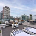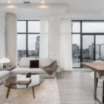 Whether you’re a professional seeking a convenient urban lifestyle or an investor looking for a prime piece of Toronto real estate, this executive suite boasts a chic and modern aesthetic that’s sure to check all of your boxes. This northeast corner unit offers a spacious gourmet kitchen with stainless steel appliances, quartz countertops, and a central island perfect for culinary enthusiasts. The highlight of this residence is its expansive patio space, offering unparalleled outdoor living. Step through the dining area onto your sprawling private terrace, complete with a gas line for your BBQ and breathtaking city views. Inside, the open living area features two walls of oversized windows, creating a dynamic atmosphere filled with natural light. Situated mere steps from transit, future Corktown station, shops, cafes, bars, restaurants, George Brown College, and some of the East End’s most vibrant neighbourhoods.